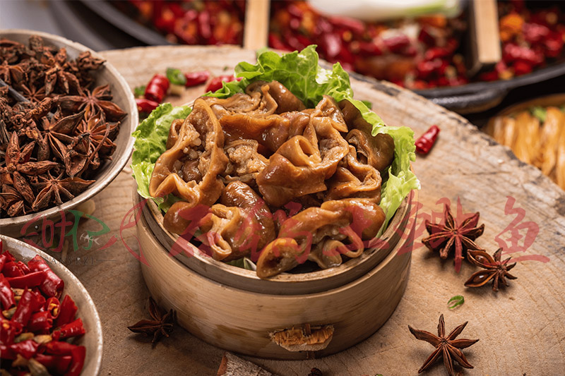 鹵肥腸是一道出名的鹵味菜品,也是很多人喜愛的,選用當天的鮮肥腸,三葉仔鹵肥腸經過慢火細燉,選用獨特秘制鹵料,出鍋后的鹵肥腸味道鮮美,好吃的停不下來,如果在放到麻辣鍋底里面就更加入味。